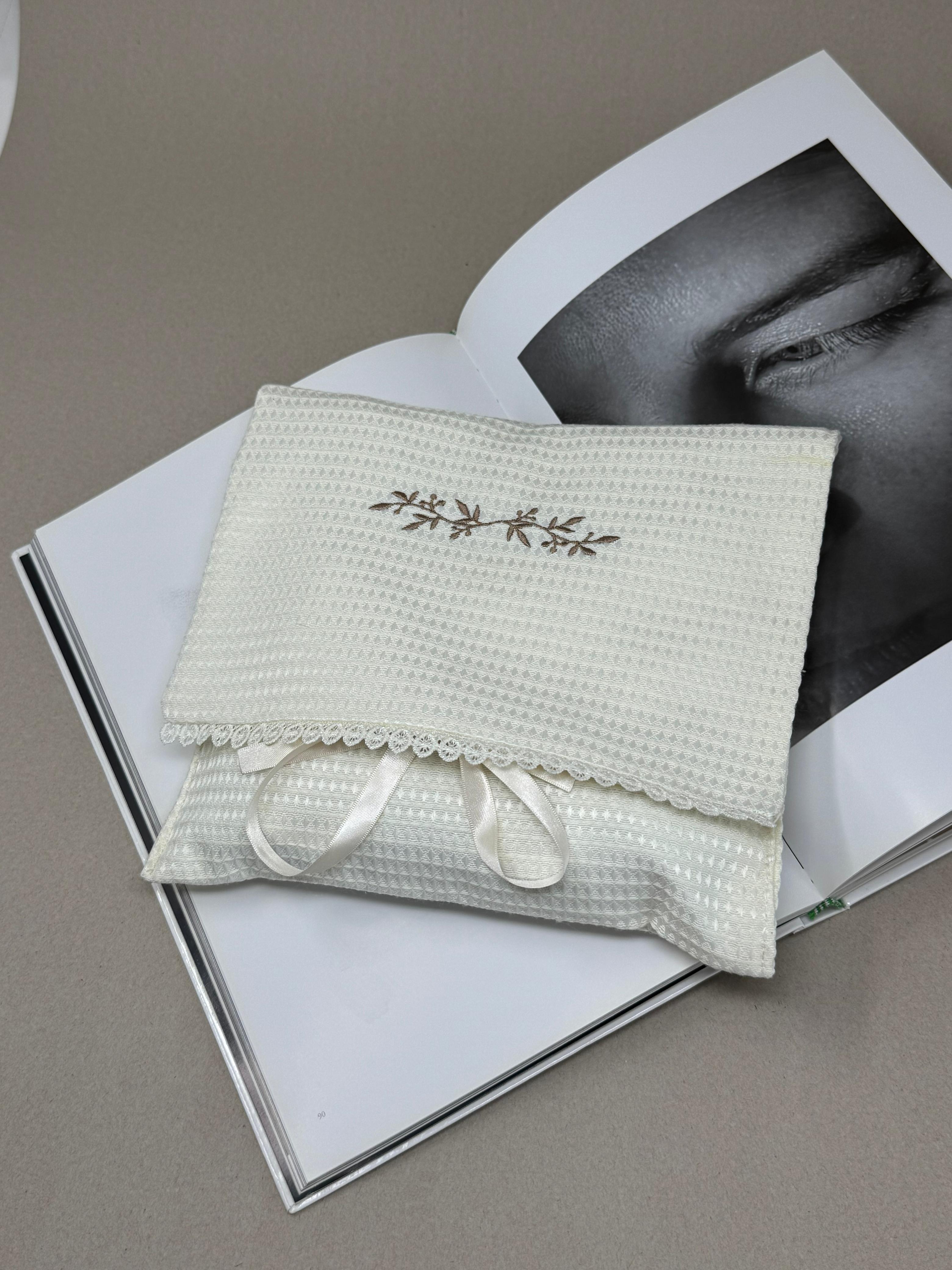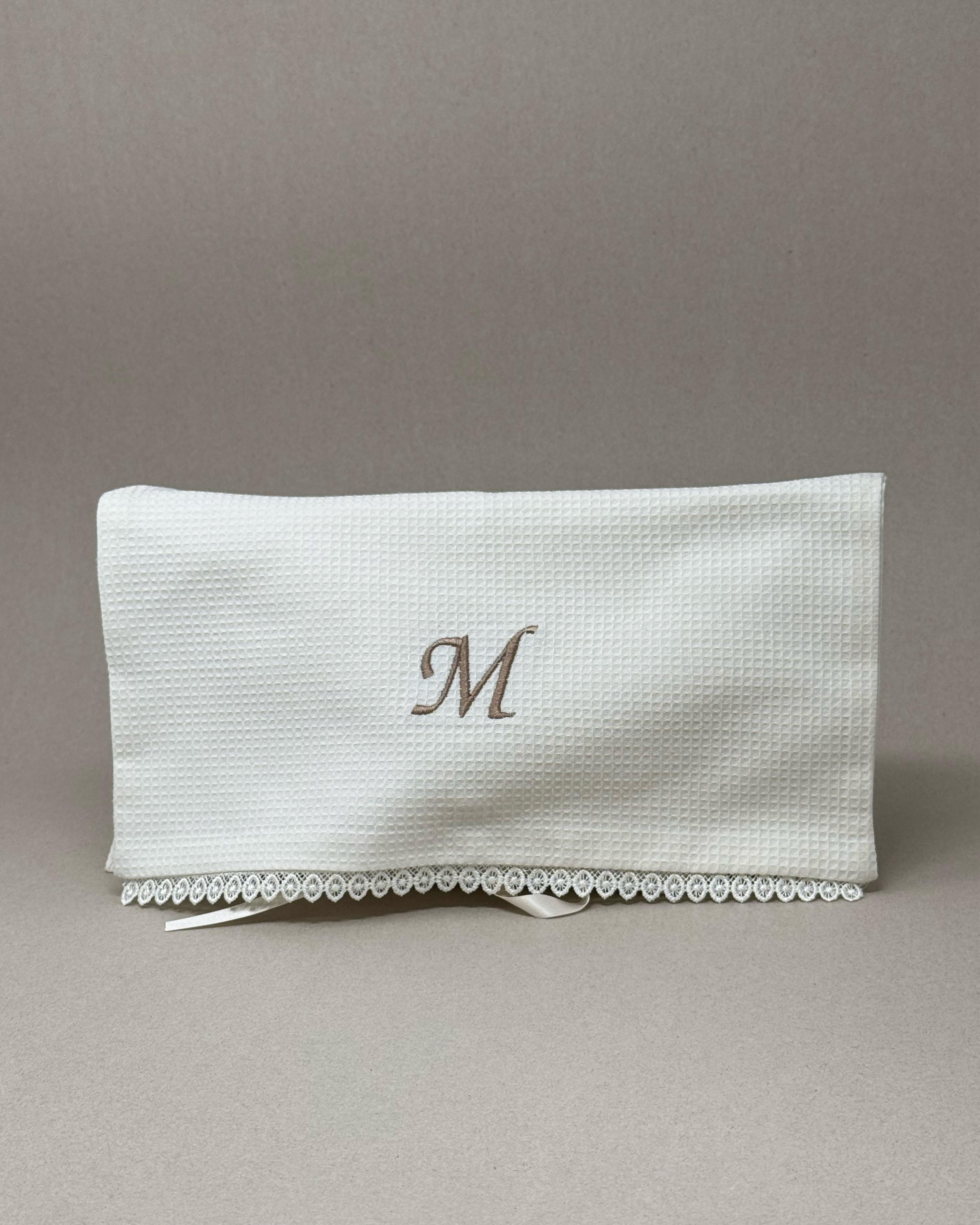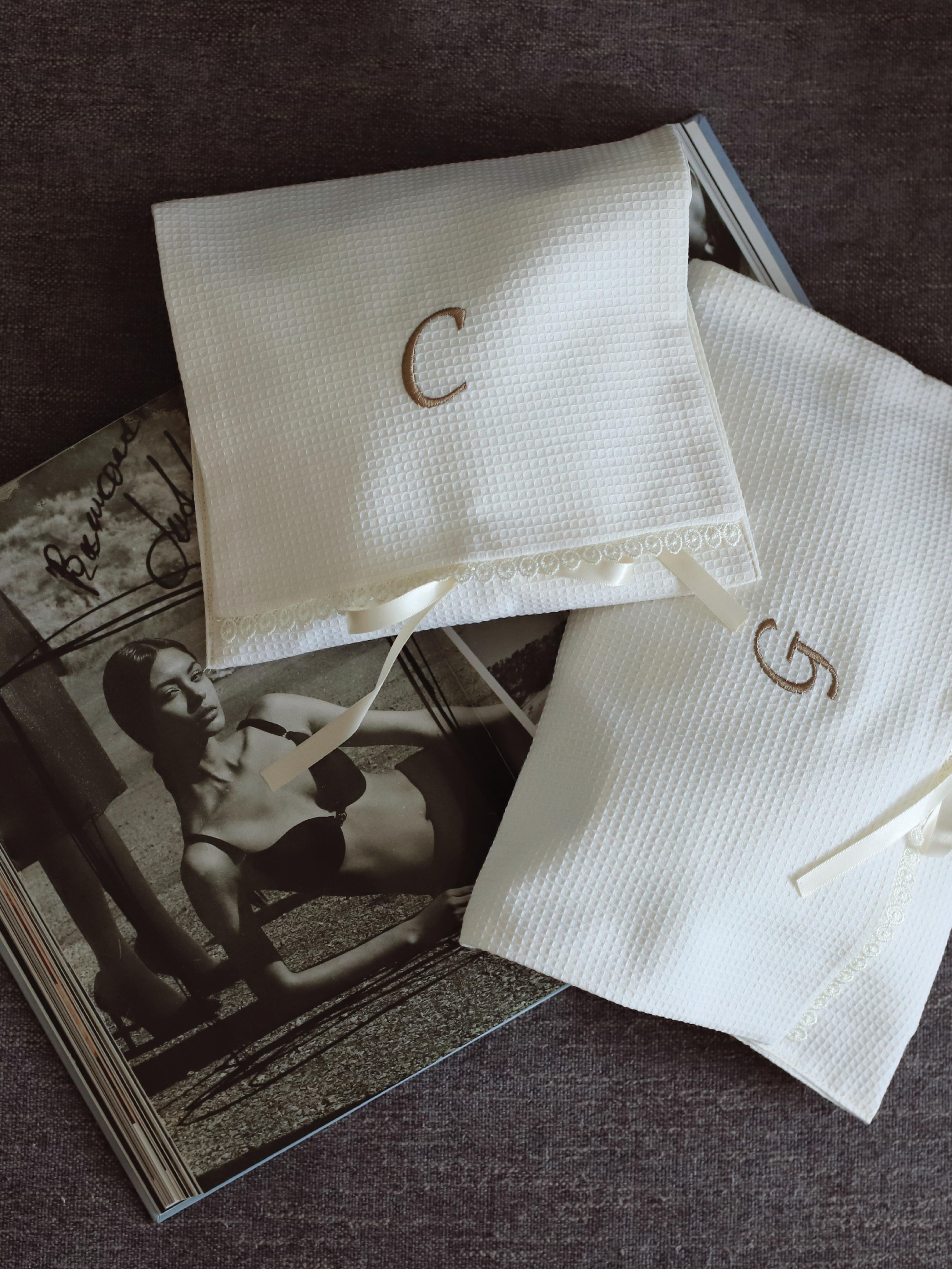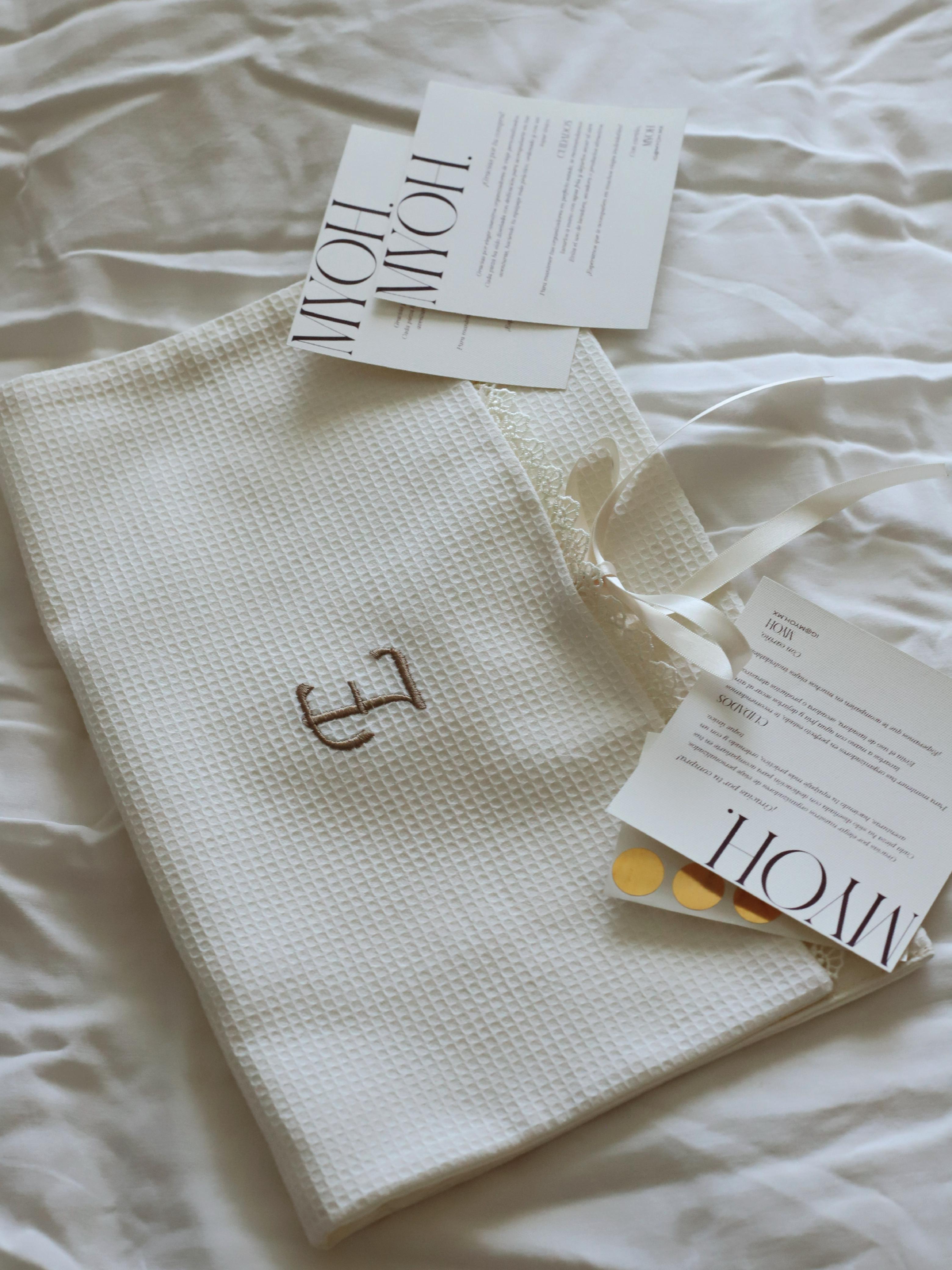Iniciales y motivos sutiles con acabado textil y tacto suave.