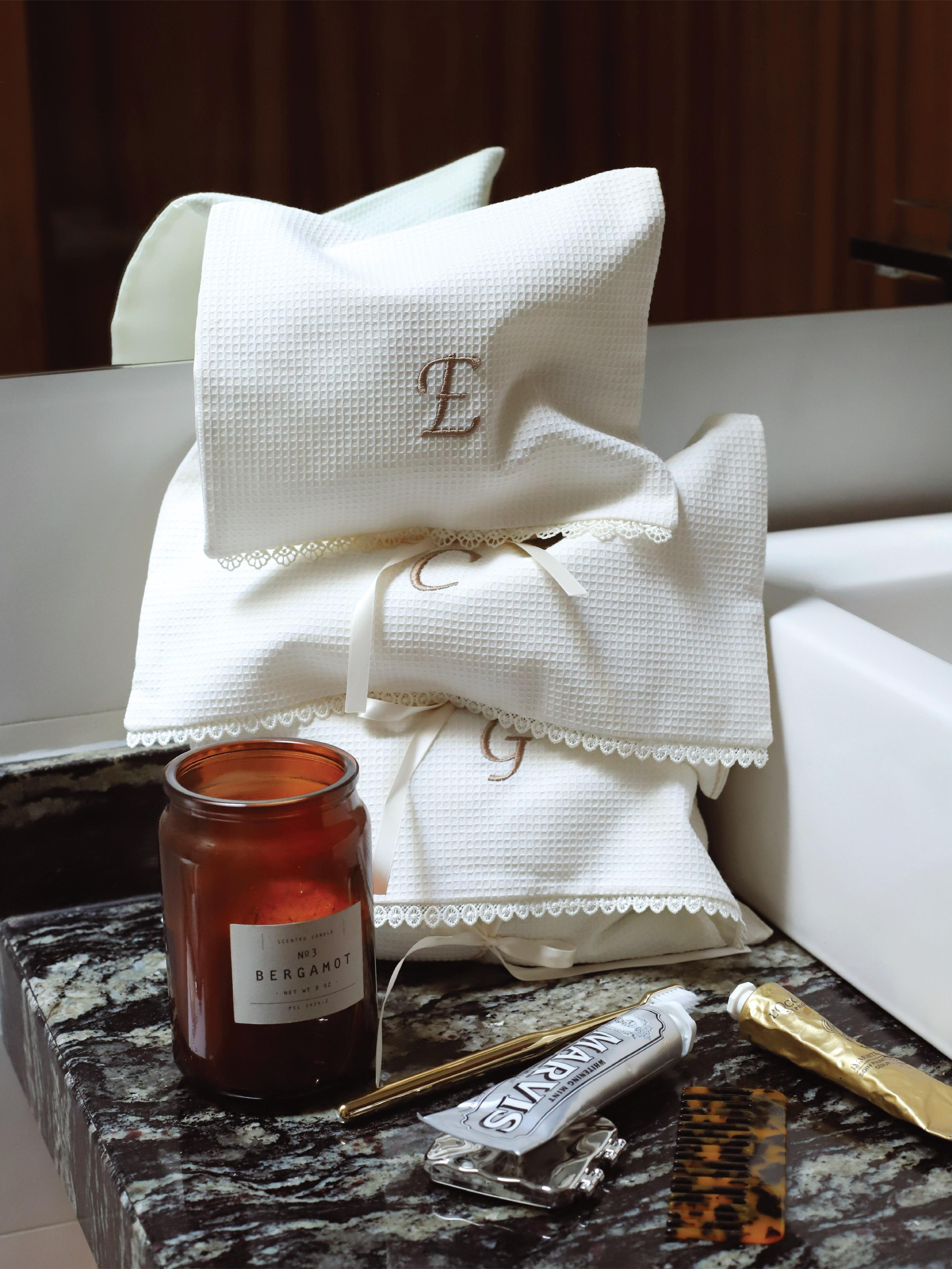 Iniciales bordadas para convertir cada pieza en un objeto propio.